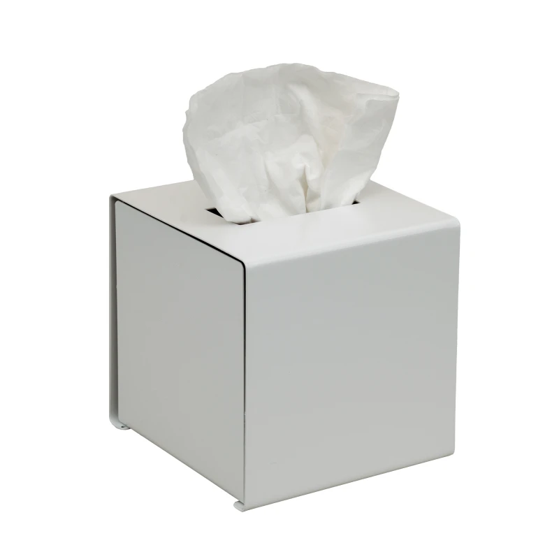 Θήκη για χαρτομάντηλα, κύβος, inox σε λευκό ματ χρώμα από την Pam & Co - Διαστάσεις: 13εκ.
