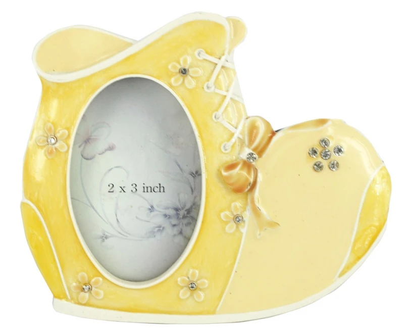 Κορνίζα παιδική πολυεστερική με σμάλτο σε κίτρινη - εκρού απόχρωση, στρας τύπου swarovski και ανάγλυφα λουλούδια - φιογκάκι από την Royal Art - Διάσταση Φωτογραφίας: 13x10εκ.