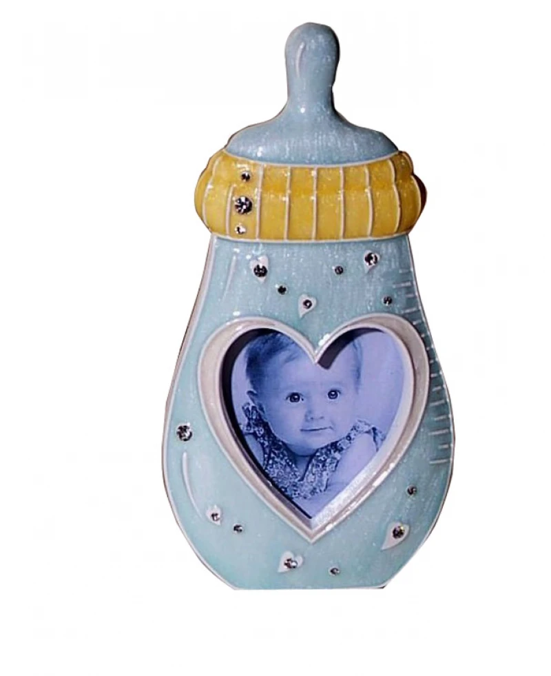 Κορνίζα παιδική χειροποίητη ακρυλική σε σχήμα μπιμπερό - καρδιά σε γαλάζιο χρώμα με στρας τύπου swarovski από την Royal Art - Διάσταση: 15εκ.
