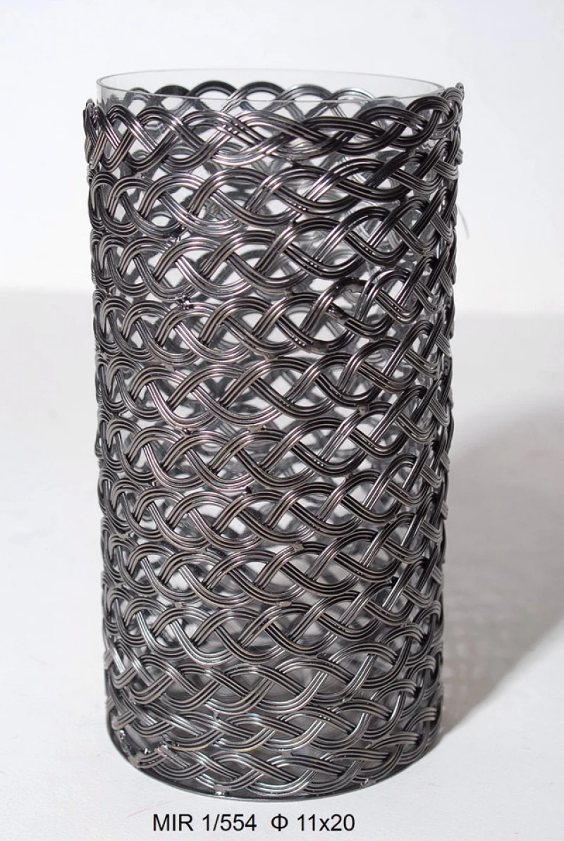 Κηροπήγιο χειροποίητο μεταλλικής πλέξης με εσωτερικό γυαλί από την Royal Art - Διαστάσεις: 11x20εκ.