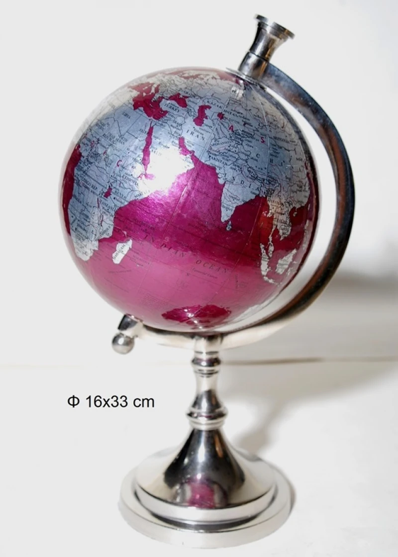 Υδρόγειος σφαίρα μεταλλική με βάση inox από την Royal Art - Διαστάσεις: 16x33εκ.