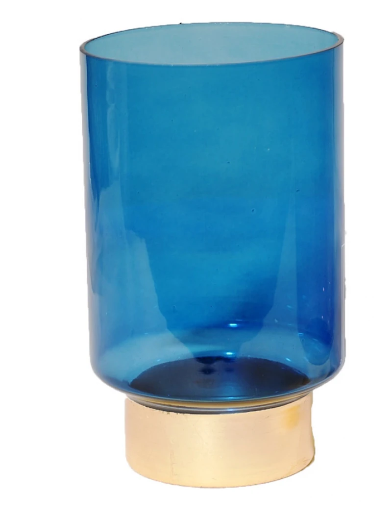 Κηροπήγιο γυάλινο σε μπλε - χρυσό χρώμα από την Royal Art Collection - Διαστάσεις: 13x22εκ.