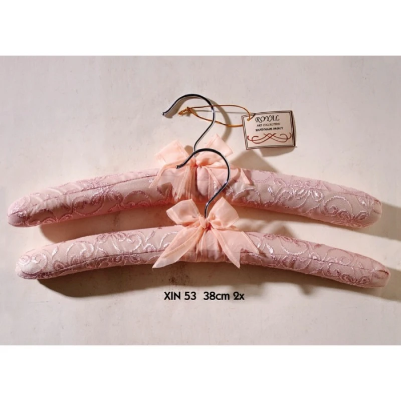 Σετ 2τμχ κρεμάστρες επενδυμένες με ύφασμα ροζ και δαντέλα από την Royal Art - Διάσταση: 38εκ.