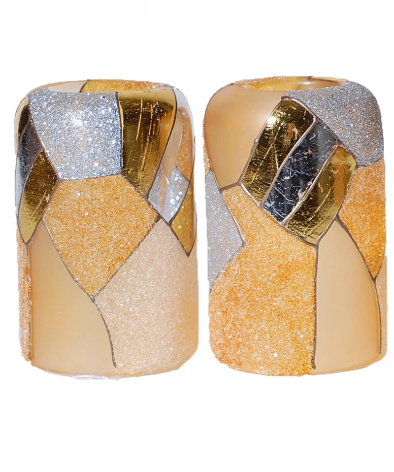 Κηροπήγιο για ρεσώ σετ 2τμχ γυάλινο σε μελί χρώμα με χρυσές και ασημί ιριδίζουσες λεπτομέρειες από την Royal Art - Διαστάσεις: 11εκ.