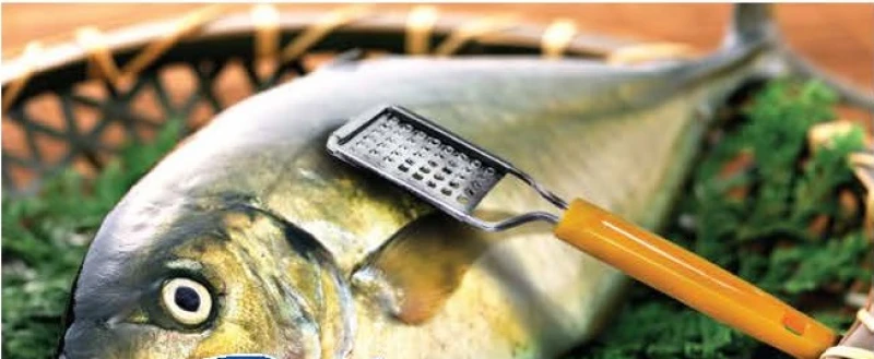 Ψαροκαθαριστής Ανοξείδωτος με Πλαστικό Χέρι σε 3 διαφορετικά χρώματα (πράσινο, μπλε, πορτοκαλί) ανάλογα την διαθεσιμότητα - Διαστάσεις: 19εκ.