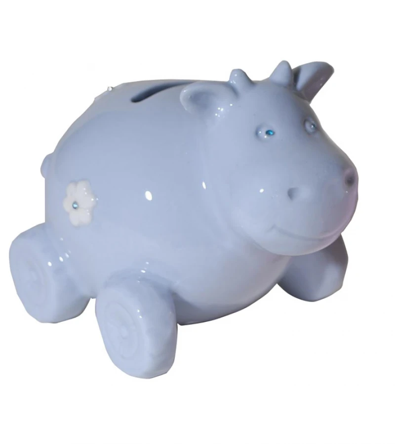 Κουμπαράς πορσελάνης σε σχήμα ιπποπόταμου σε μπλε χρώμα από την Royal Art Collection - Διαστάσεις: 12εκ.