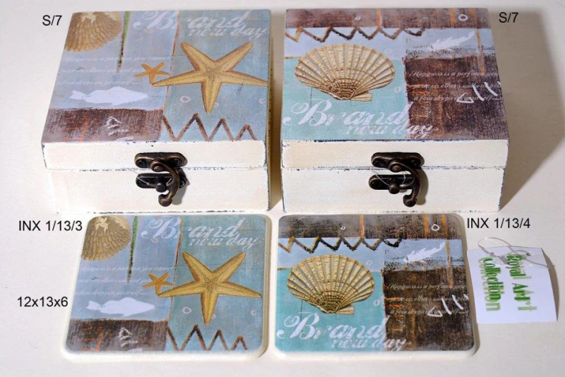 Σετ 6τμχ σουβέρ γυάλινα και ξύλινο αντικέ κουτί με γυάλινη επιφάνεια από την Royal Art Collection - Διαστάσεις: 12x13x6εκ.