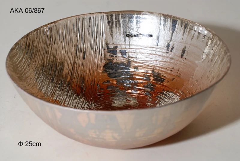 Διακοσμητικό μπωλ γυάλινο, ανάγλυφο σε χρυσό - ασημί χρώμα από την Royal Art Collection - Διαστάσεις: 25εκ.