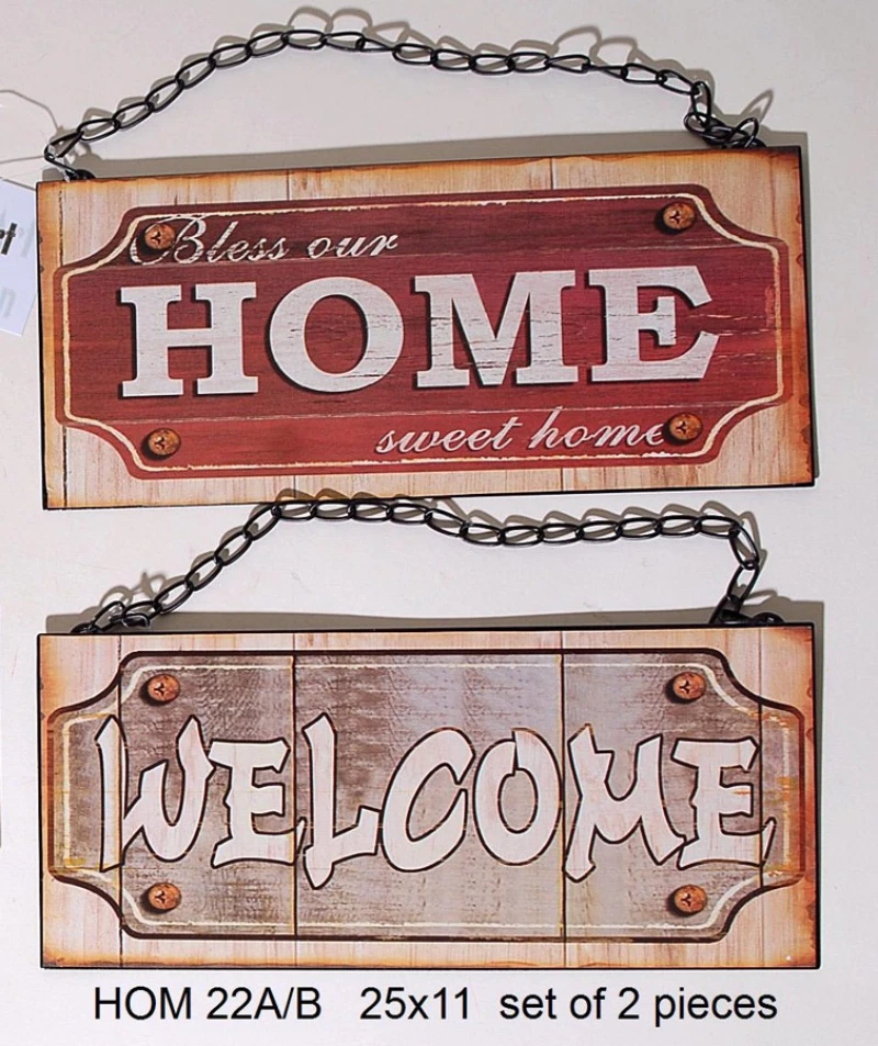 Σετ 2τμχ διακοσμητικές - χειροποίητες ταμπέλες μεταλλικές "HOME" και "WELCOME" από την Royal Art - Διαστάσεις: 25x11εκ.