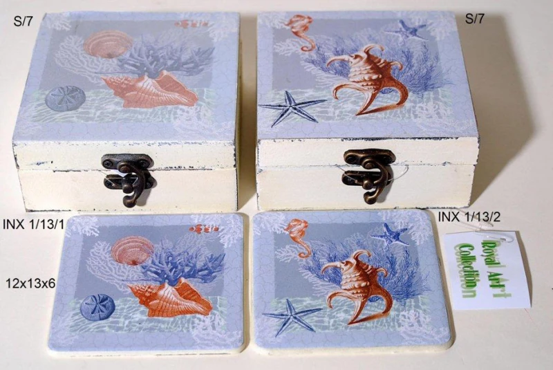 Σουβέρ Γυάλινα Σετ 6τμχ Σε Ξύλινο Κουτί 12x13x6εκ. Royal Art INX1/13/2