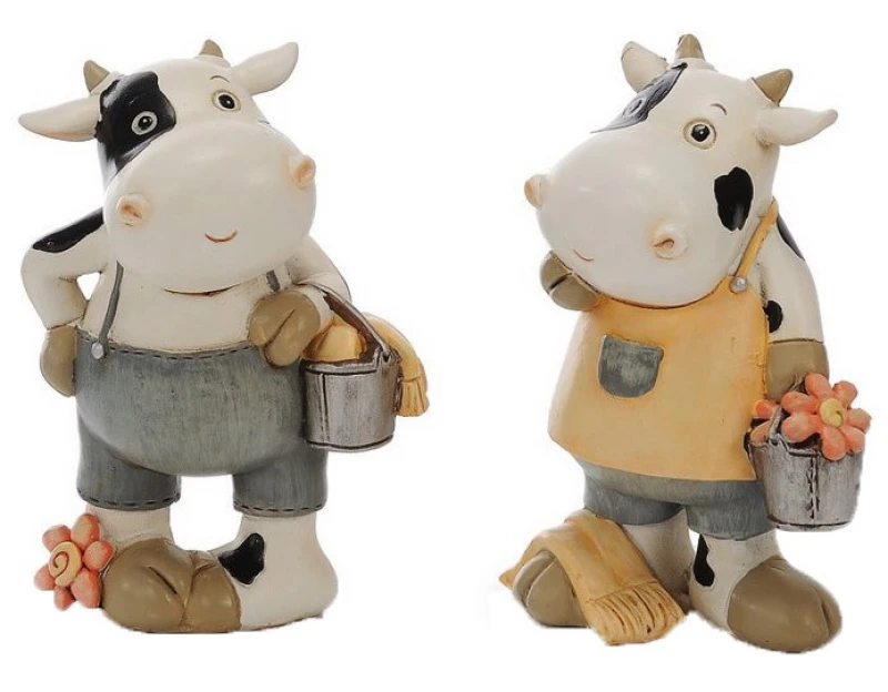 Σετ 2τμχ διακοσμητικές αγελάδες πολυεστερικές με αγροτική περιβολή που κρατάνε κουβαδάκι με λουλούδια από την Royal Art Collection, Διαστάσεις: 8x12εκ.