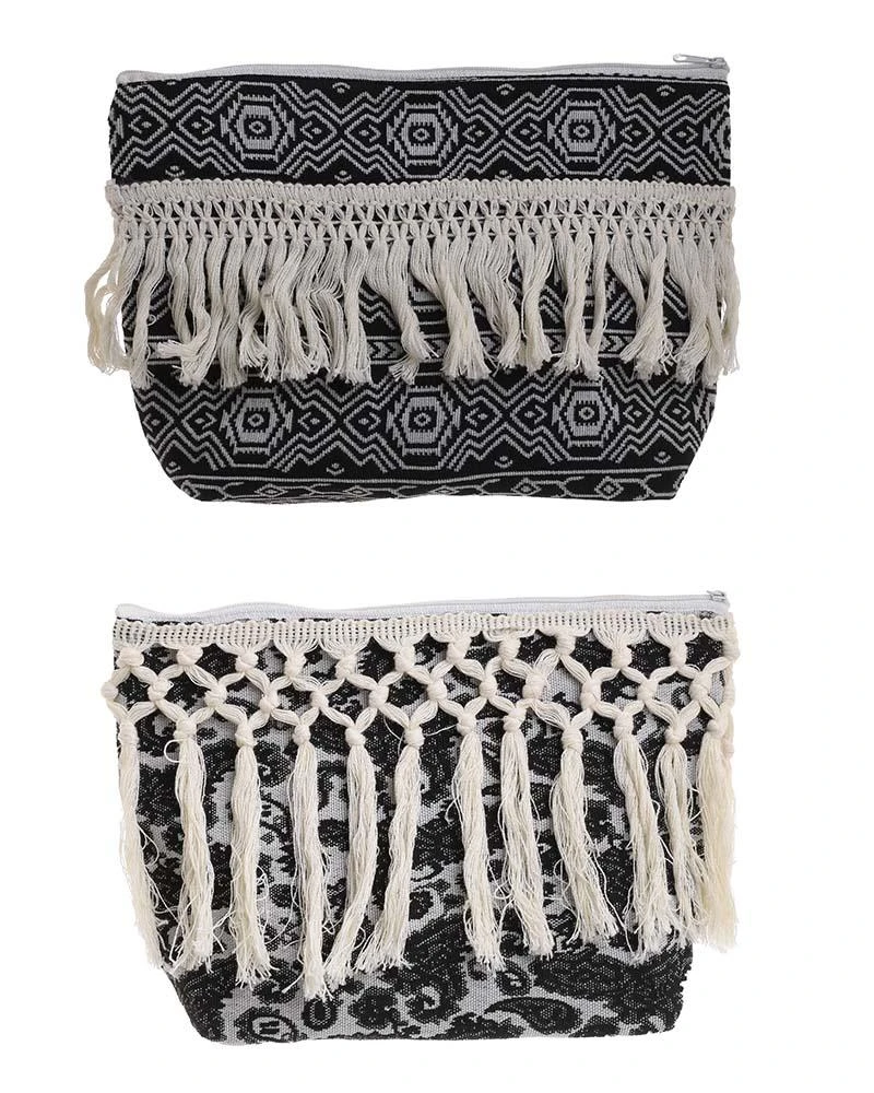 Τσαντάκι σετ 2 τεμάχια, υφασμάτινο σε δύο σχέδια σε λευκό και μαύρο χρώμα από την ble - Διαστάσεις: 28x6x17εκ.