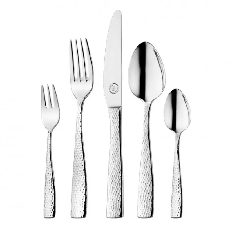 Σετ μαχαιροπήρουνα 72τμχ ανοξείδωτα 18/10 της σειράς Hammered από την CRYSPO TRIO - Πάχους: 3mm. Το σετ περιλαμβάνει: 12 μαχαίρια φαγητού, 12 κουτάλια φαγητού, 12 πηρούνια φαγητού, 12 κουταλάκια γλυκού, 12 πηρουνάκια γλυκού, 1 κουτάλα σούπας, 1 σπάτουλα σερβιρίσματος, 1 κουτάλι σαλάτας, 1 πηρούνι σαλάτας, 2 κουτάλια σερβιρίσματος, 1 κουτάλι κρέμας, 2 πηρούνια κρέατος, 1 κουτάλι βουτύρου, 1 τσιμπίδα ζάχαρης και 1 κουτάλα σάλτσας.
