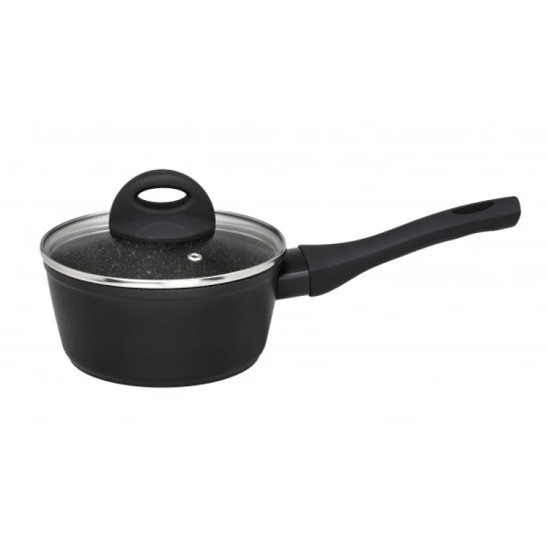 Κατσαρολάκι γάλακτος αντικολλητικό με καπάκι, από χυτό αλουμίνιο με εσωτερική επίστρωση πέτρας και επαγωγικό πυθμένα της σειράς Petra από την CRYSPO TRIO - Διάσταση: 16εκ. - Χωρητικότητα: 1,7L