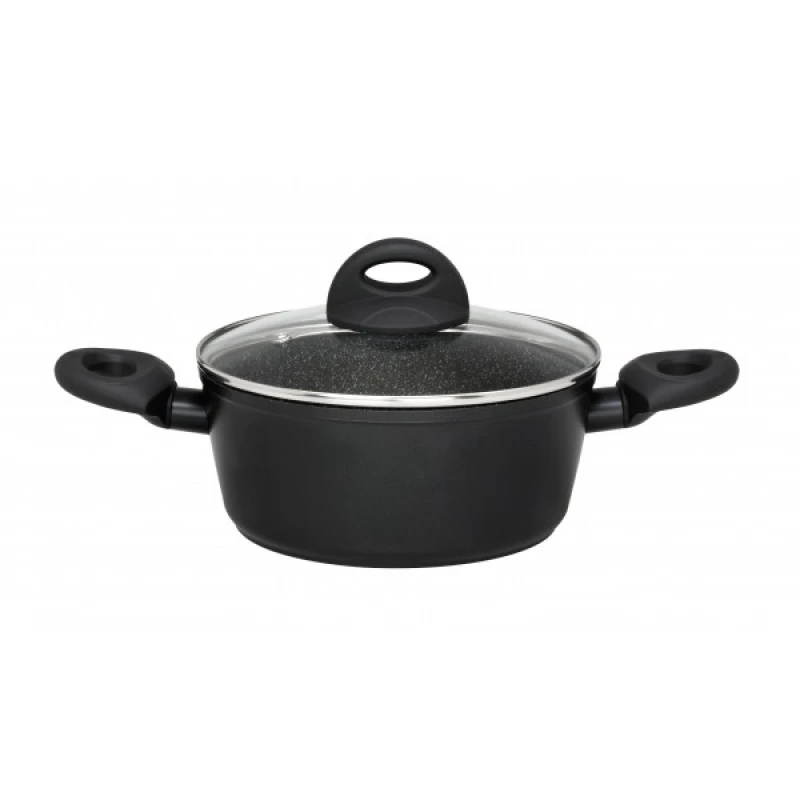 Κατσαρόλα αντικολλητική με καπάκι, από χυτό αλουμίνιο με εσωτερική επίστρωση πέτρας και επαγωγικό πυθμένα της σειράς Petra από την CRYSPO TRIO - Διάσταση: 20εκ. - Χωρητικότητα: 2,8L