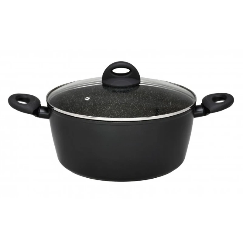Κατσαρόλα αντικολλητική με καπάκι, από χυτό αλουμίνιο με εσωτερική επίστρωση πέτρας και επαγωγικό πυθμένα της σειράς Petra από την CRYSPO TRIO - Διάσταση: 28εκ. - Χωρητικότητα: 7,3L
