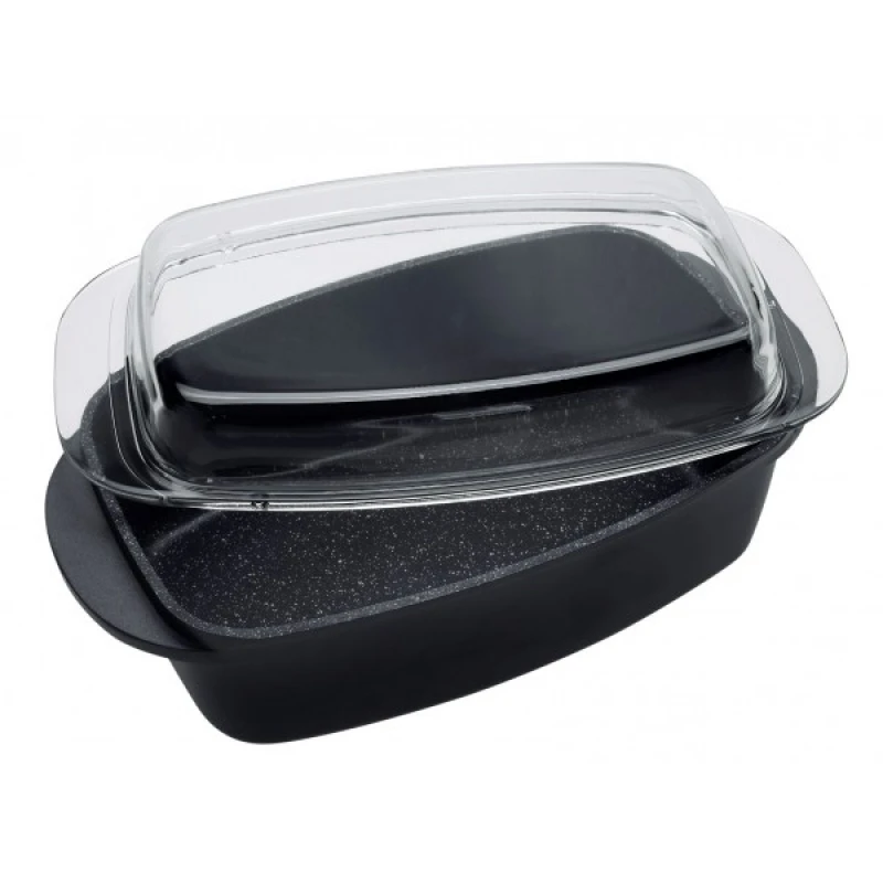 Γάστρα ψησίματος αλουμινίου για να μαγειρεύετε ομοιόμορφα τα φαγητά σας και να μην λερώνετε τον φούρνο σας. Αντικολλητική με γυάλινο καπάκι για να μπορείτε να βλέπετε το φαγητό σας.