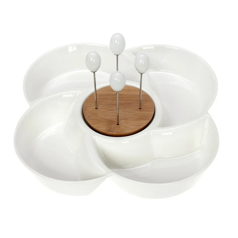 Ορντεβιέρα 4 θέσεων πορσελάνης σε λευκό χρώμα με 4 πηρουνάκια στο κέντρο, της σειράς Lotos από την CRYSPO TRIO.