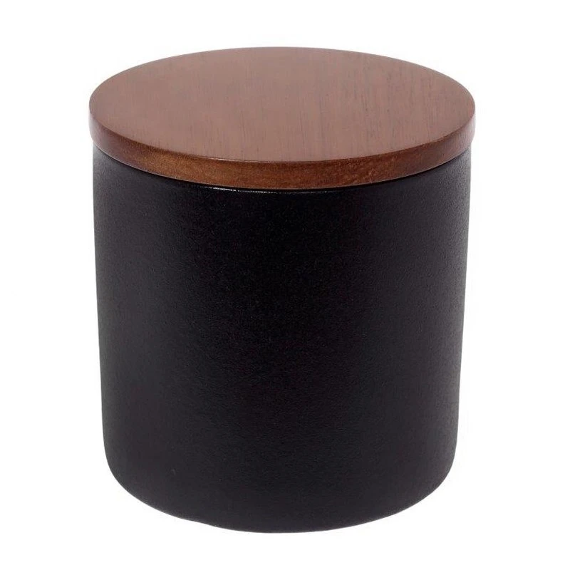 Δοχείο για καφέ σε μαύρο χρώμα crystal glaze porcelain με καπάκι από ξύλο ακακίας από την CRYSPO TRIO - Διαστάσεις: 10,2x10,2εκ.