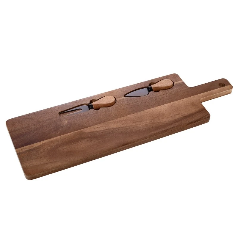 Πλατώ σερβιρίσματος από ξύλο ακακίας με 2 εργαλεία της σειράς Soul Kitchen από την CRYSPO TRIO - Διαστάσεις: 52x16εκ.