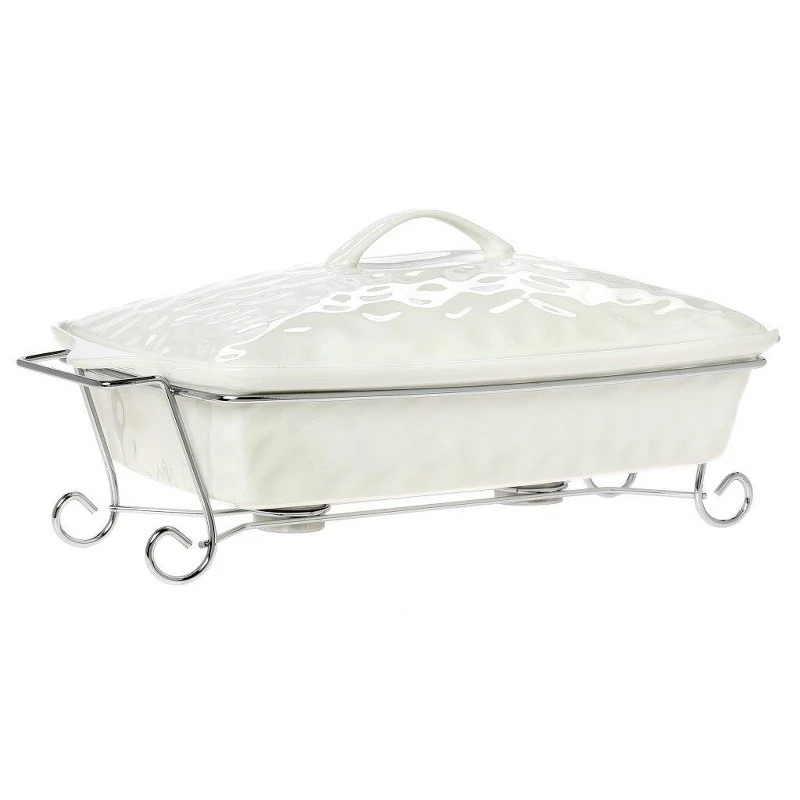 Γάστρα πυρίμαχη παραλληλόγραμμη με καπάκι και όψη πορσελάνης πάνω σε ανοξείδωτη βάση σε λευκό χρώμα της σειράς Punto από την CRYSPO TRIO - Διαστάσεις: 42εκ.