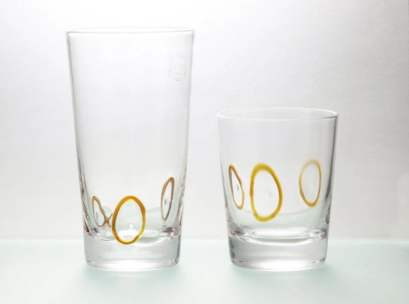 Σετ ποτήρια ουίσκι 6 τεμαχίων από χειροποίητο φυσητό γυαλί με κίτρινη λεπτομέρεια της σειράς Circles από την CRYSPO TRIO - Χωρητικότητας: 350ml.