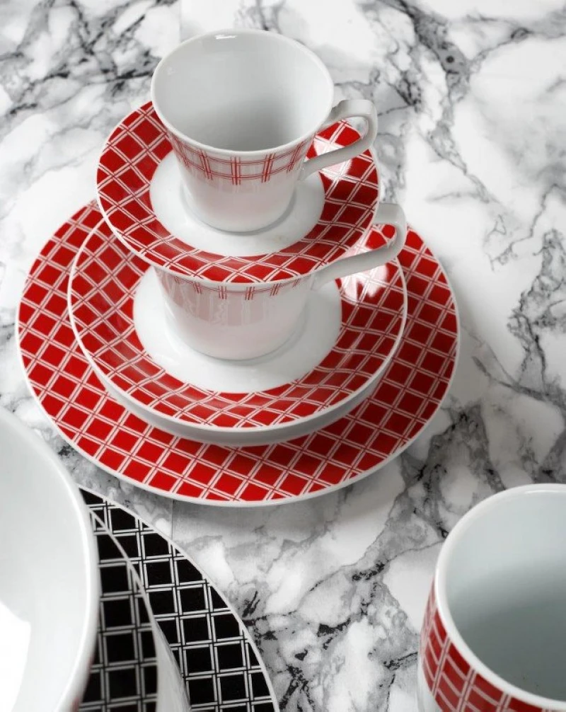 Σετ 6τμχ φλυτζάνια τσαγιού πορσελάνης της σειράς Rubik Red από την CRYSPO TRIO - Χωρητικότητας: 220ml.