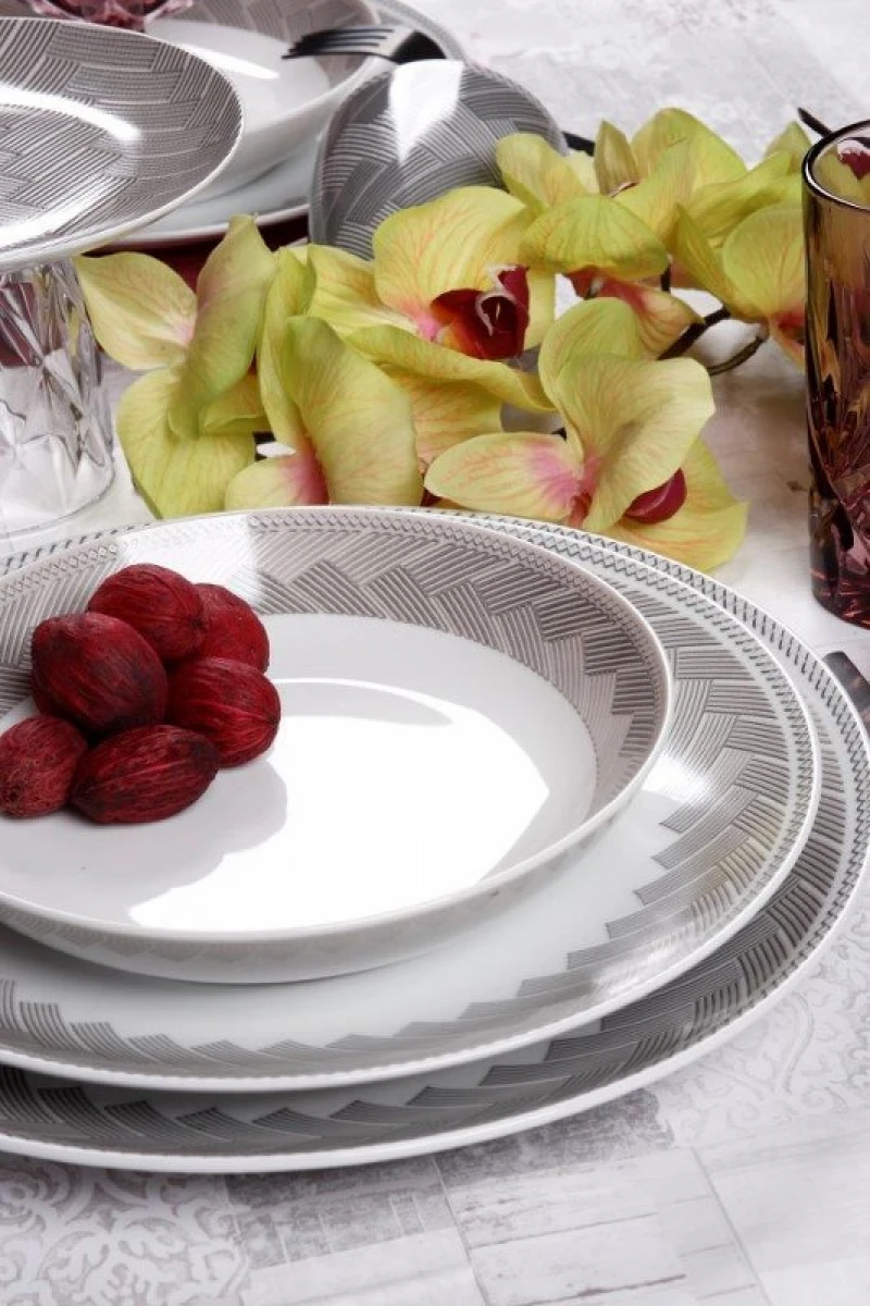 Σερβίτσιο πιάτων 20 τεμαχίων από πορσελάνη της σειράς Plaza από την CRYSPO TRIO. Το σετ περιλαμβάνει: 6 Ρηχά, 6 Βαθιά, 6 Φρούτου, 1 Σαλατιέρα, 1 Πιατέλα.