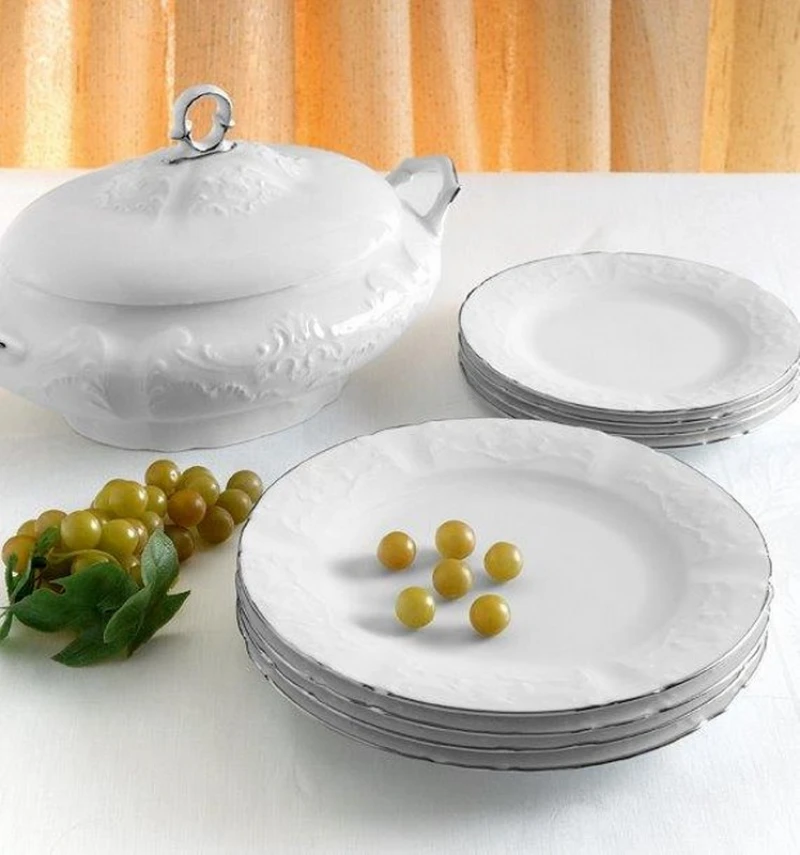 Σερβίτσιο πιάτων 20 τεμαχίων από πορσελάνη της σειράς Regina Platin από την CRYSPO TRIO. Το σετ περιλαμβάνει: 6 Ρηχά, 6 Βαθιά, 6 Φρούτου, 1 Σαλατιέρα, 1 Πιατέλα.
