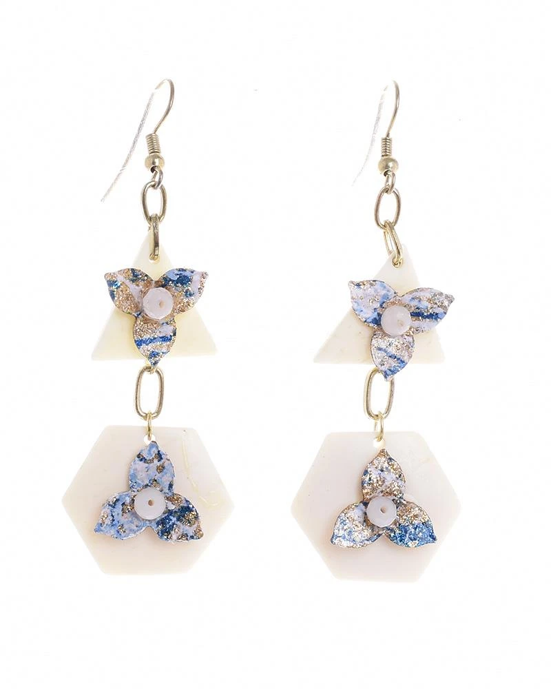 Σκουλαρίκια σετ 2τμχ με μπλε λουλουδάκια από την ble - Διαστάσεις: 2x7εκ.