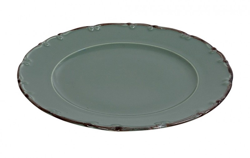 Πιάτο φαγητού ρηχό πορσελάνης σε πράσινο χρώμα με καφέ χείλος από την ESPIEL - Διαστάσεις: 27εκ. - Η ελάχιστη ποσότητα αγοράς για αυτό το προϊόν είναι 6τμχ.
