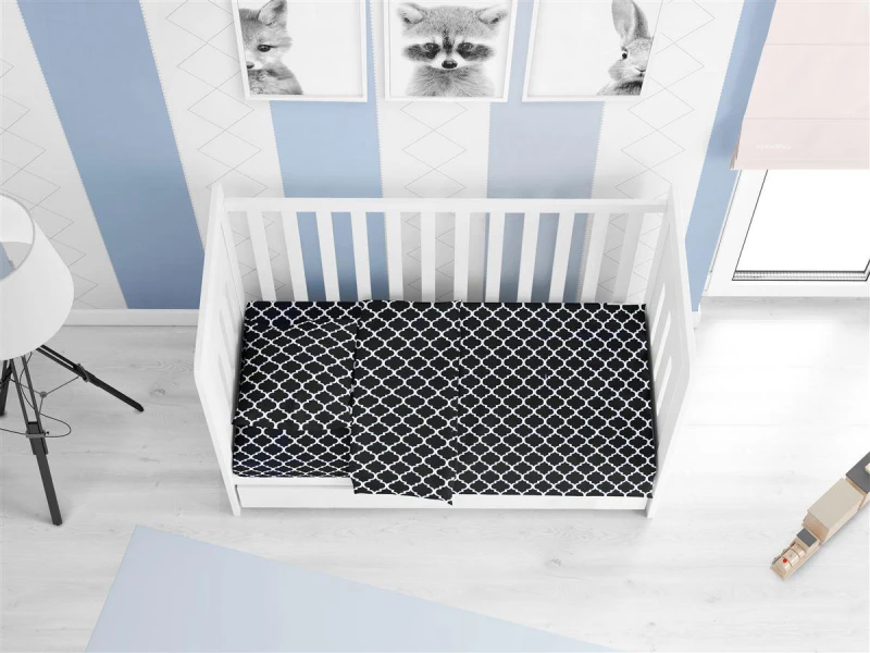 Πάπλωμα κούνιας με γέμιση βάτα αντιαλλεργική 300 gsm, εμπριμέ, 100% βαμβακερό, 144 κλωστών σε λευκό - σκούρο μπλε χρώμα από την DIMcol - Διαστάσεις: 120x160εκ.