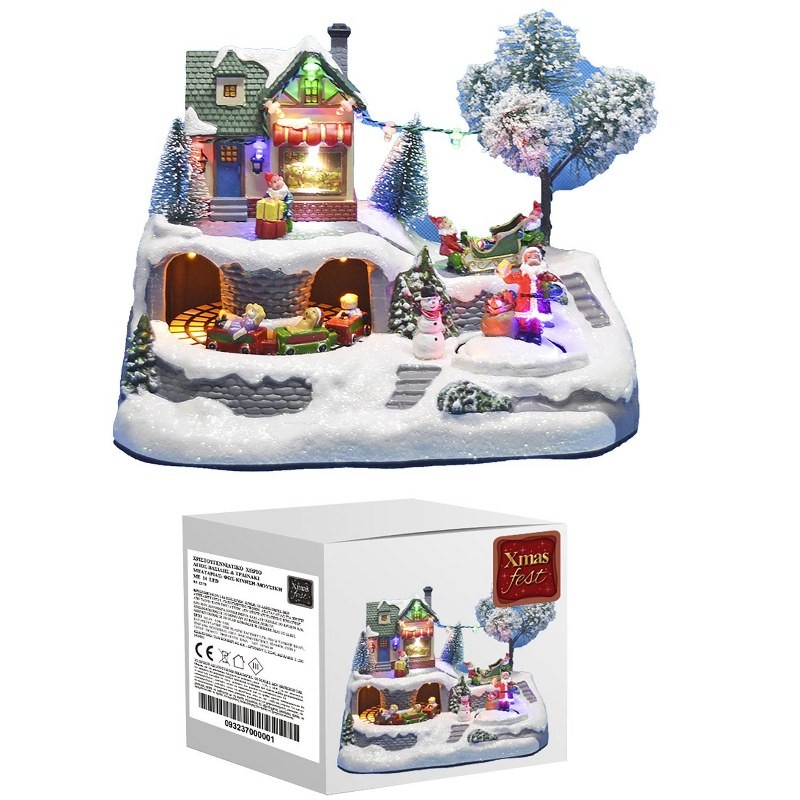 Χριστουγεννιάτικο διακοσμητικό χωριό μπαταρίας με φως, μουσική και κίνηση, με Άγιο Βασίλη και τρενάκι από την Xmas fest - Διαστάσεις: 23εκ. Οι μπαταρίες δεν περιέχονται.