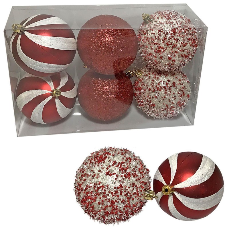 Σετ μπάλες 6τμχ σε κόκκινο χρώμα σε τρία σχέδια από την Xmasfest - Διαστάσεις: 7εκ.
