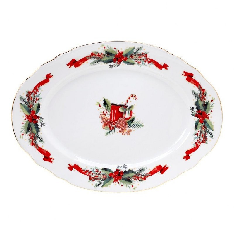 Χριστουγεννιάτικη πιατέλα πορσελάνης οβάλ της σειράς Christmas Magic από την CRYSPO TRIO - Διαστάσεις: 38εκ.