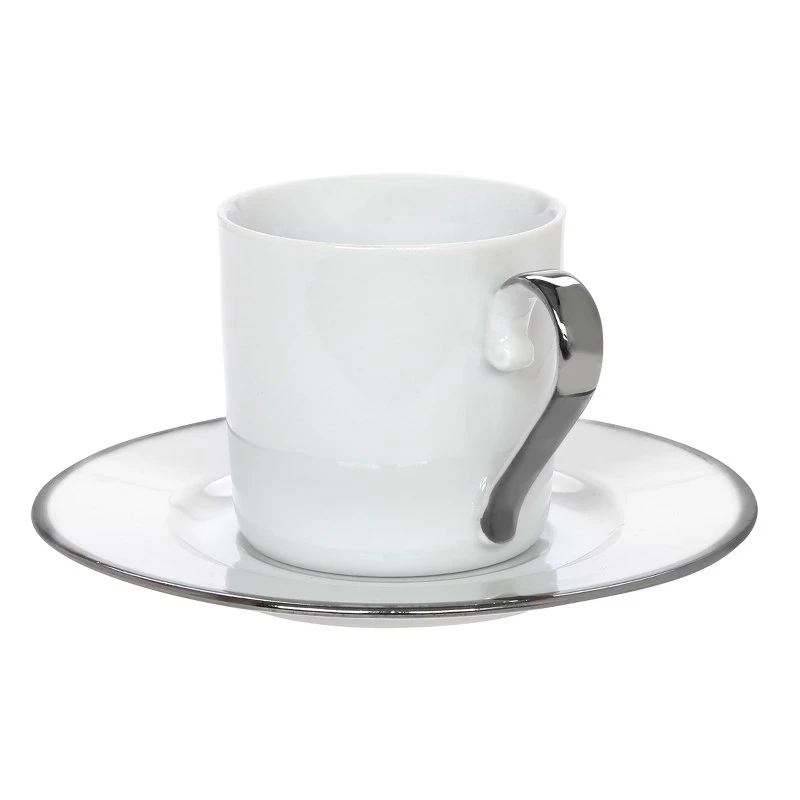 Φλυτζάνι καφέ πορσελάνης χειροποίητο σε λευκό χρώμα με λεπτομέρειες από πλατίνα της σειράς Elegant από την CRYSPO TRIO - Χωρητικότητας: 100ml - Η ελάχιστη ποσότητα αγοράς για αυτό το προϊόν είναι 2τμχ.