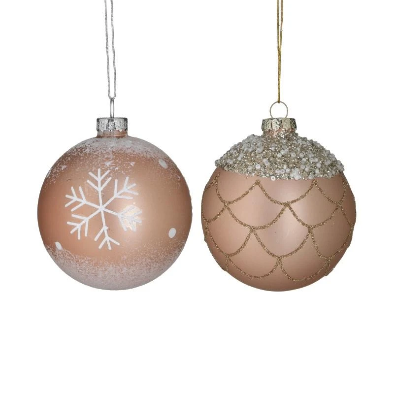 Σετ μπάλες 6τμχ, γυάλινες σε ροζ-χρυσό χρώμα από την inart - Διαστάσεις: Δ8εκ.