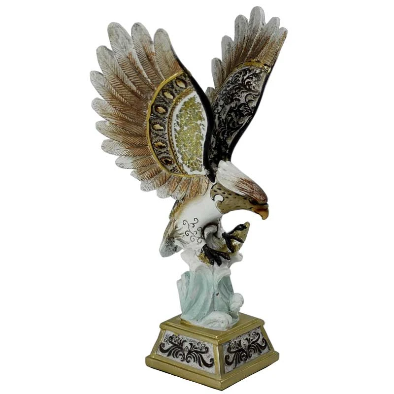Διακοσμητικός αετός πολυεστερικός σε λευκή απόχρωση με ανοιχτά φτερά και ανάγλυφα σχέδια από την Royal Art - Διαστάσεις: 19x34εκ.