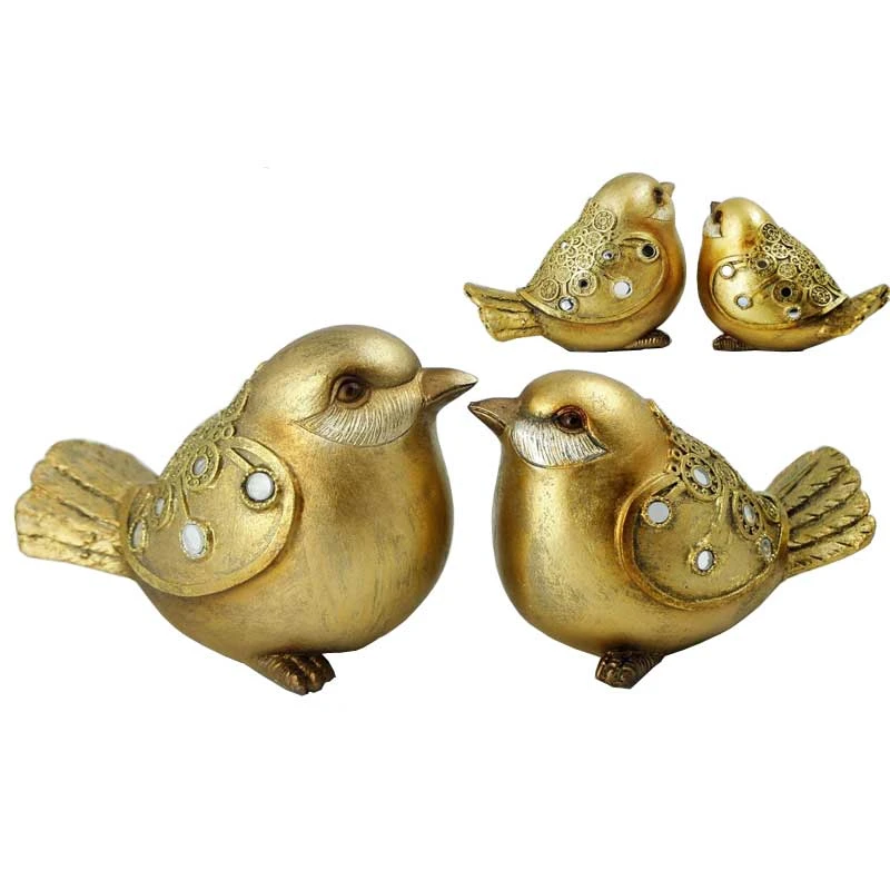 Σετ 2τμχ διακοσμητικά επιτραπέζια πουλάκια polyester σε χρυσή απόχρωση με ανάγλυφες λεπτομέρειες και στρας από την Royal Art Collection - Διαστάσεις: 13,5x11εκ.-11,5x9,5εκ.