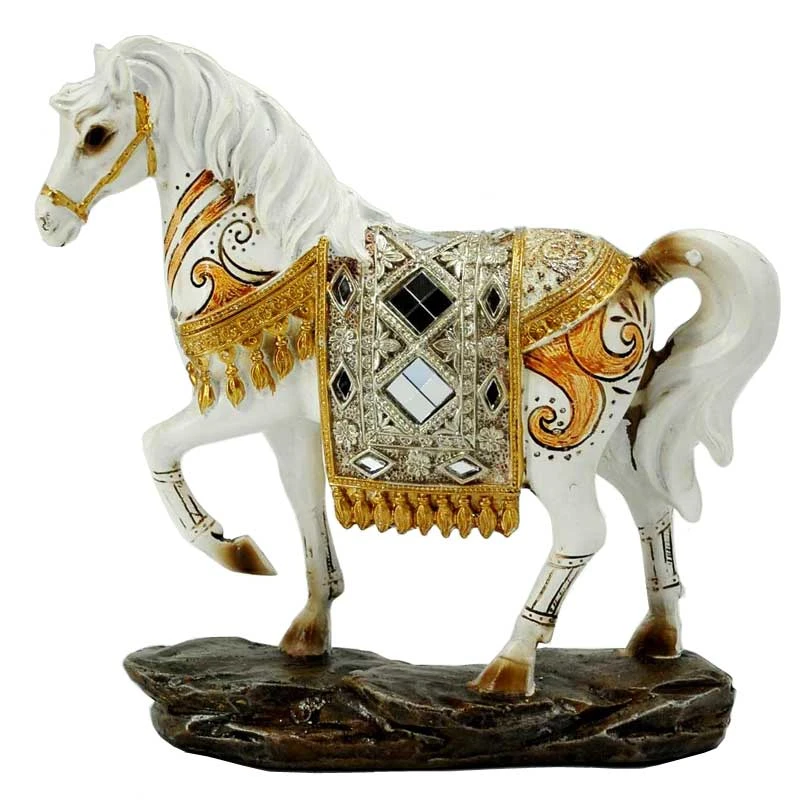 Διακοσμητικό άλογο πολυεστερικό σε λευκή απόχρωση με χρυσές και ανάγλυφες λεπτομέρειες με στρσς από την Royal Art - Διαστάσεις: 19x20εκ.
