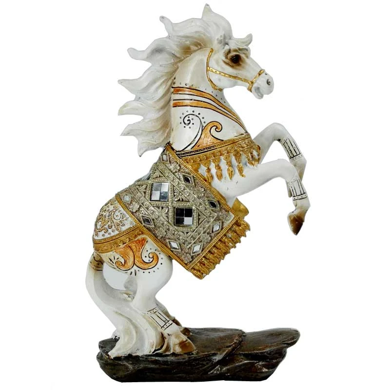 Διακοσμητικό άλογο σε άρση πολυεστερικό σε λευκή απόχρωση με χρυσές και ανάγλυφες λεπτομέρειες με στρσς από την Royal Art - Διαστάσεις: 16x28εκ.