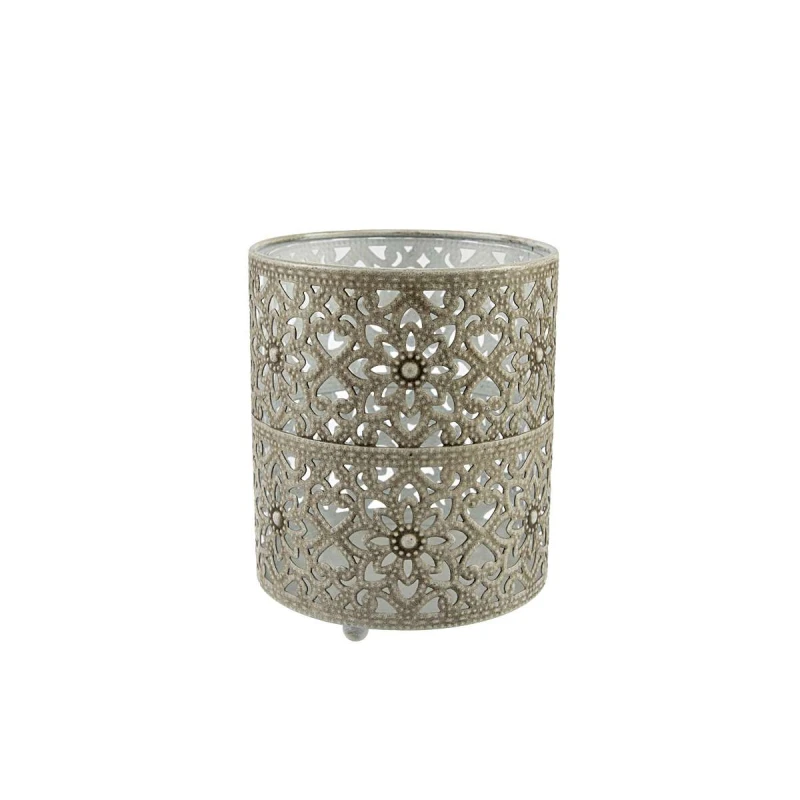 Κηροπήγιο μεταλλικό σε αντικέ-ασημί-λευκό χρώμα από την Art Et Lumiere - Διαστάσεις: 12x14,5εκ.