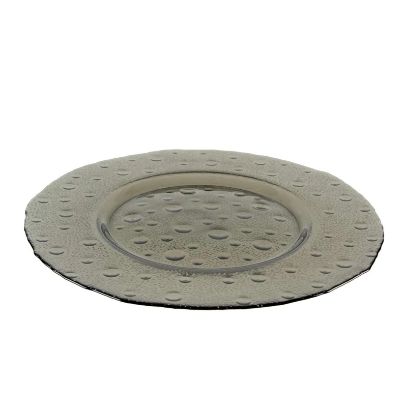 Πιατέλα στρογγυλή γυάλινη σε γκρι φιμέ χρώμα από την Art Et Lumiere - Διαστάσεις: 34εκ. - Η ελάχιστη ποσότητα αγοράς για αυτό το προϊόν είναι 2τμχ.