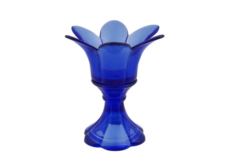 Κηροπήγιο γυάλινο σε σχήμα λουλούδι σε μπλε χρώμα από την Art Et Lumiere - Διαστάσεις: 10x12εκ. - Η ελάχιστη ποσότητα αγοράς για αυτό το προϊόν είναι 6τμχ.