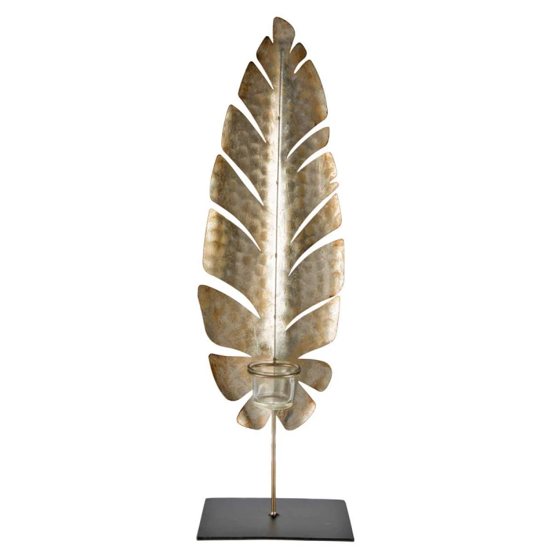 Κηροπήγιο φύλλο μεταλλικό σε χρυσό χρώμα από την Art Et Lumiere - Διαστάσεις: 18x12x63εκ.