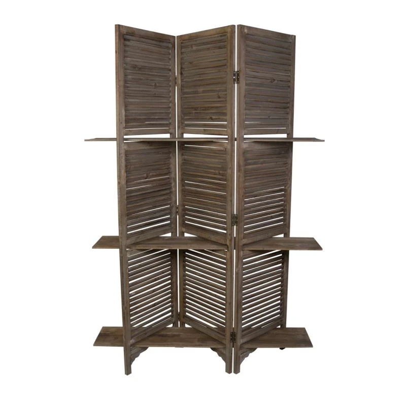 Παραβάν-Ραφιέρα Ξύλινο Αντικέ Καφέ-Λευκό Art Et Lumiere 122x35x180εκ. 05177