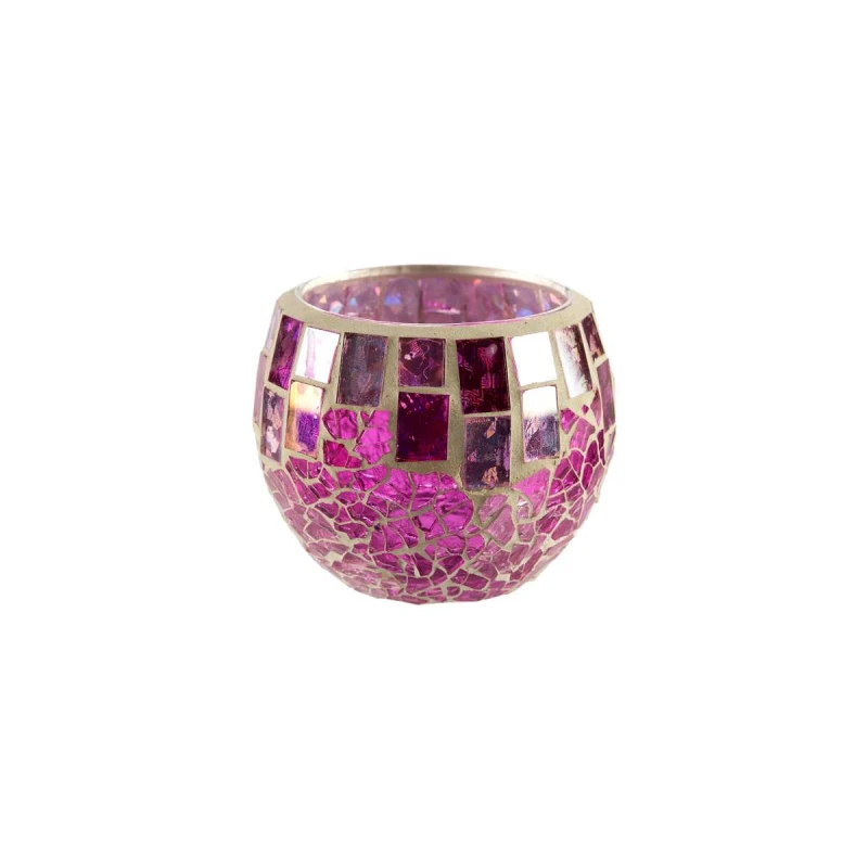 Κηροπήγιο γυάλινο βιτρώ σε ροζ-μωβ-ασημί χρώμα από την Art Et Lumiere - Διαστάσεις: Φ8x6,5εκ. - Η ελάχιστη ποσότητα αγοράς για αυτό το προϊόν είναι 2τμχ.