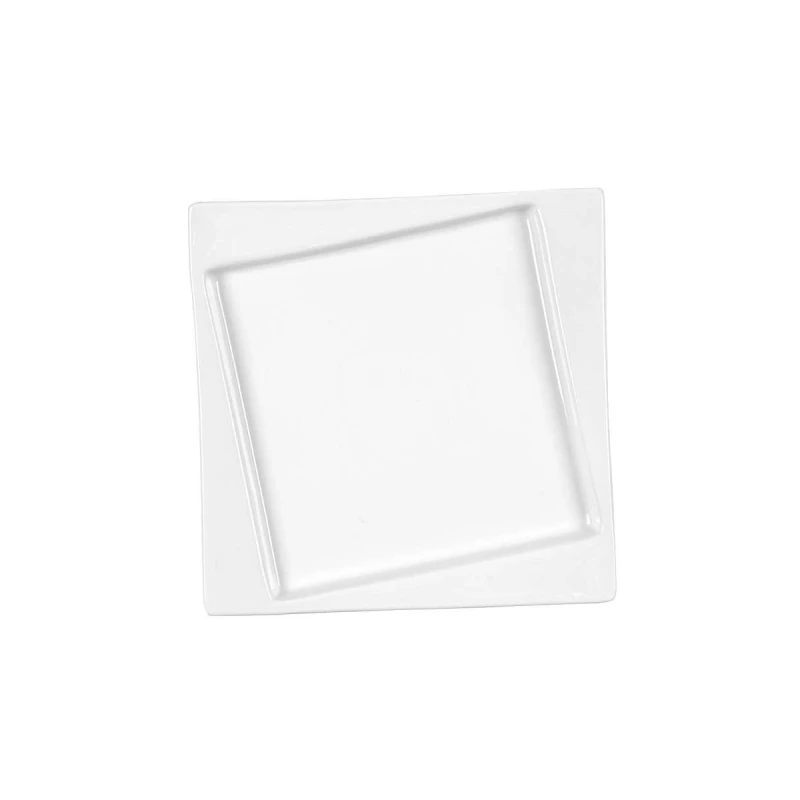 Πιάτο φρούτου τετράγωνο πορσελάνης σε λευκό χρώμα της σειράς Diagonal από την Art Et Lumiere - Διαστάσεις: 20,5x20,5x2εκ. - Η ελάχιστη ποσότητα αγοράς για αυτό το προϊόν είναι 6τμχ.