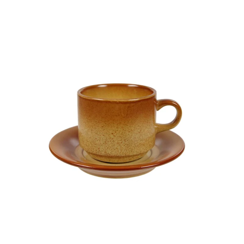 Φλυτζάνι με πιατάκι από υλικό πυραντοχής πορσελάνης σε καφέ-μπεζ χρώμα από την Art Et Lumiere - Χωρητικότητα: 210ml - Η ελάχιστη ποσότητα αγοράς για αυτό το προϊόν είναι 6τμχ.