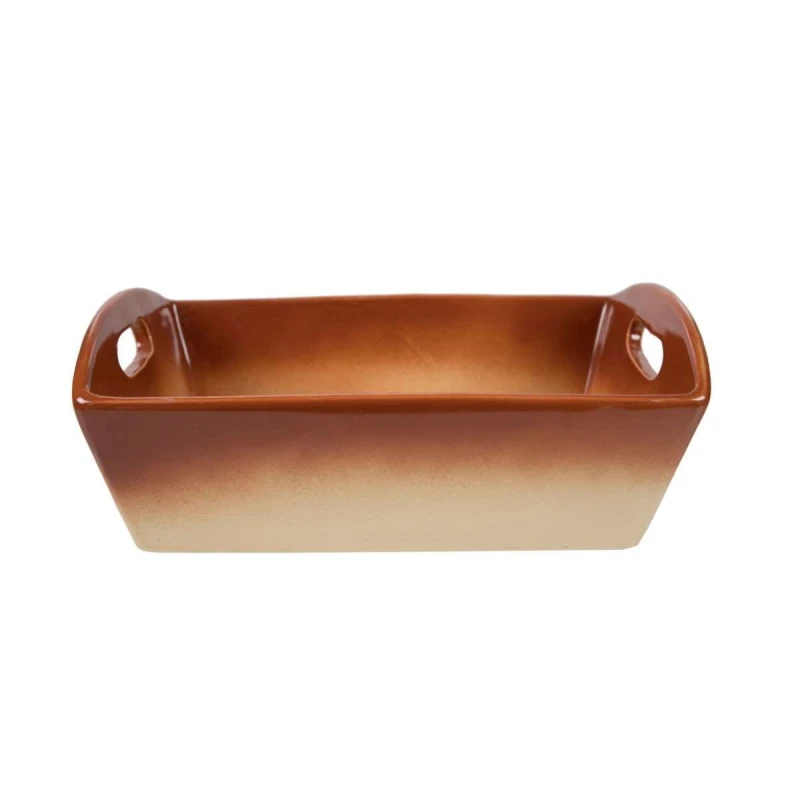 Ψωμιέρα πυράντοχης πορσελάνης Διόνυσος σε μπεζ - καφέ χρώμα από την Art Et Lumiere - Διαστάσεις: 24x15,5x7,5εκ.